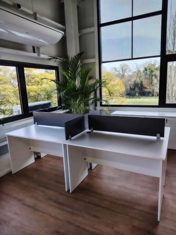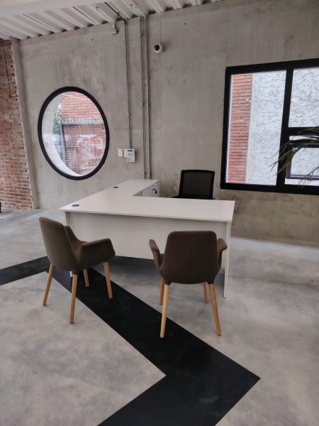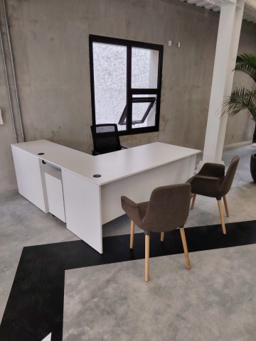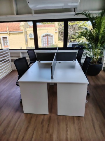 Para oficinas privadas se optó por escritorios y mesa de la línea Frame plus, con tapa melamínica y bases metálicas, con gran durabilidad y muy amplios para trabajar cómodamente.