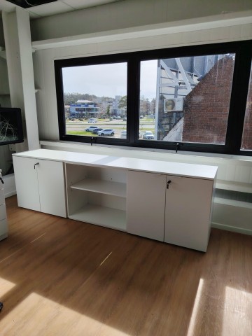 Se equiparon con escritorios MP blancos muy adaptables a cualquier espacio, en conjunto con muebles de guardado Meridian también en blanco, ideales para mantener todo ordenado.