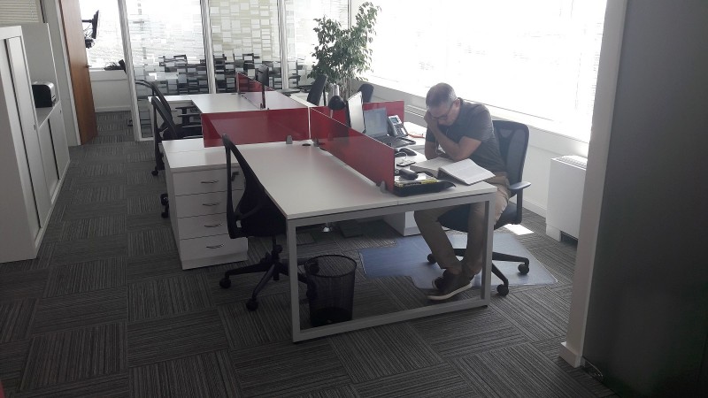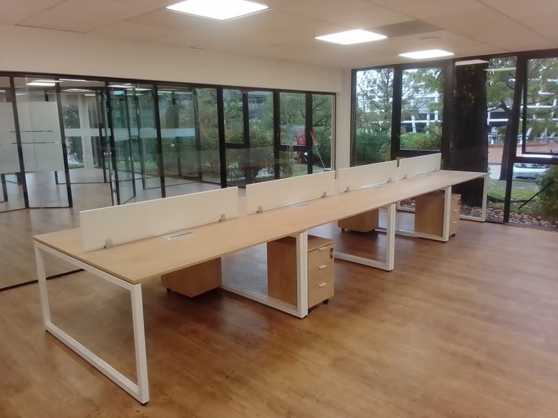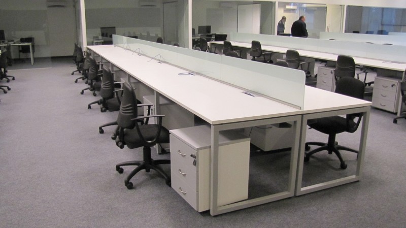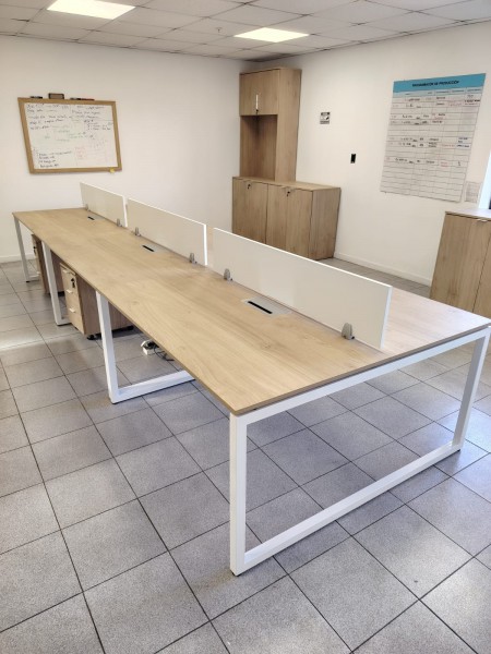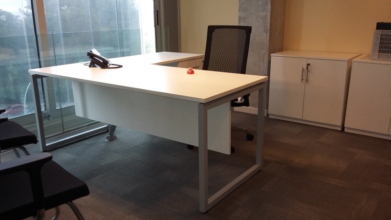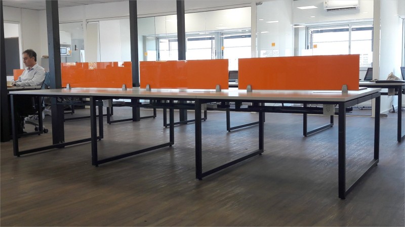 Frame | Línea operativa/ejecutiva de escritorios con bases metálicas. Tapas en placas melamínicas con bordes ABS de 2mm de espesor. Cajoneras y muebles de almacenaje complementarios. Medidas standard y medidas especiales. Combinación de colores a elección.